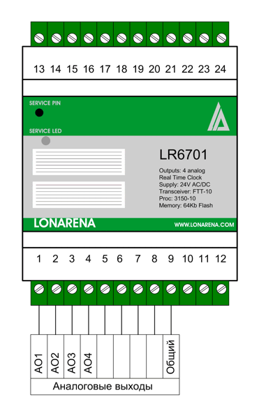 Контроллеры LR0501 предназначены для работы в системах управления на основе технологии LonWorks. Они оснащены сетевым интерфейсом TP/FT-10 (FTT-10) и могут быть частью распределенной системы управления в качестве устройства вывода аналоговых сигналов и в качестве источника точного времени. Точное время может быть использовано для управления системой в зависимости от времени суток, времени года или дня недели. Аналоговый сигнал может быть использован для управления диммерами, частотными регуляторами, приводами вентилей и воздушных заслонок и т.д. Источником питания контроллера может служить трансформатор или блок питания с номинальным выходным напряжением 24 вольта.